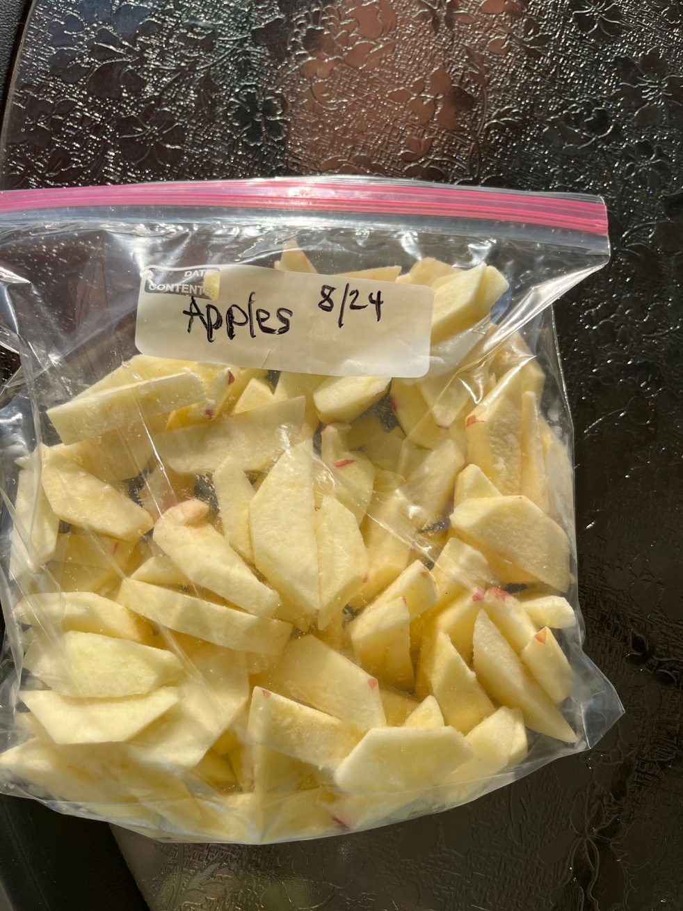 We obviously weren’t going to eat them all fresh from the orchard, so I decided to freeze some of them. The methods I used were simple, and also kept them from turning brown.