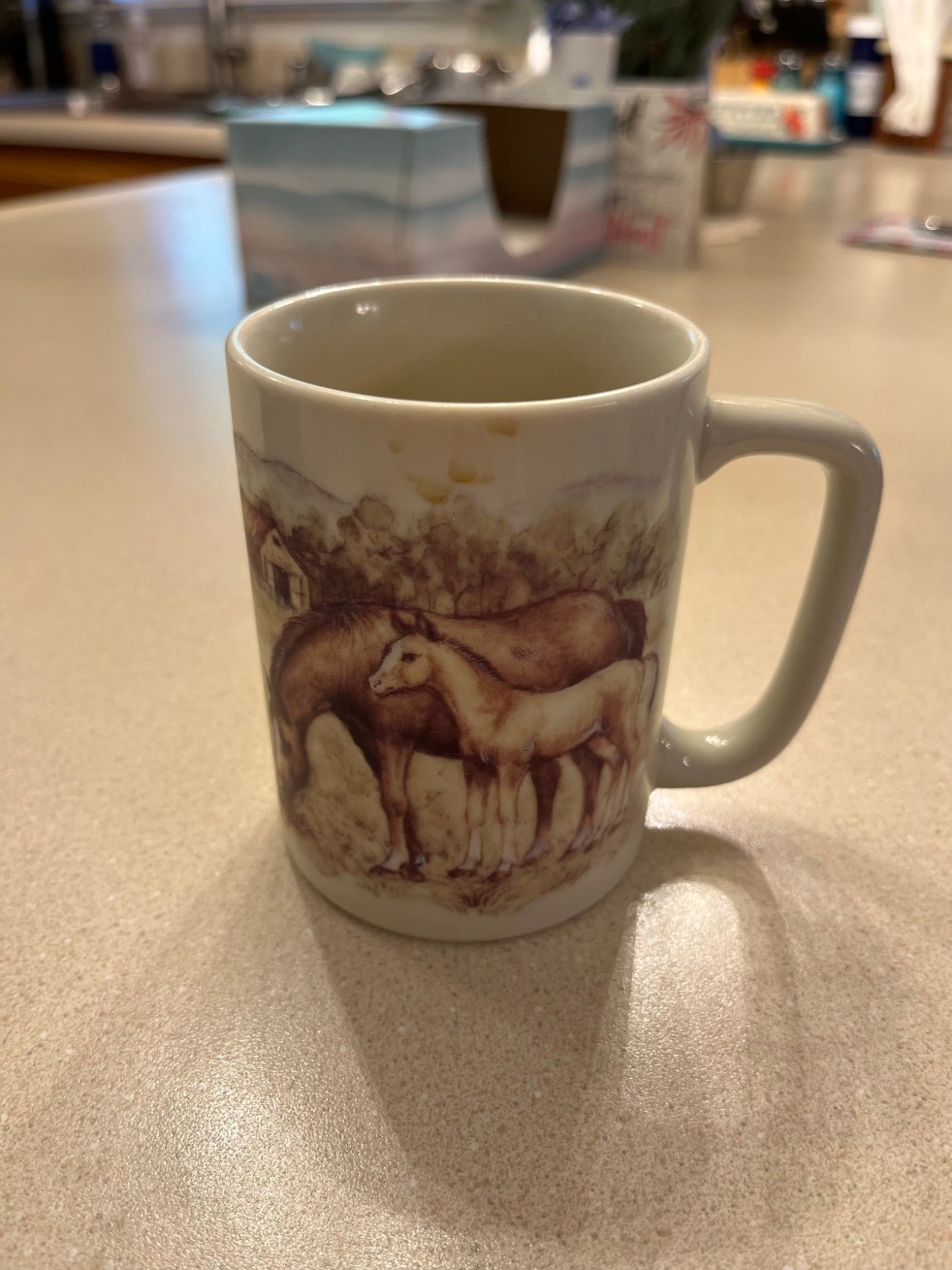 I’m drinking my coffee from my dad’s mug while he’s in the hospital 💕