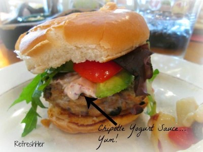 On these beautiful spring days, I’m always thinking of grilling out. Who doesn’t love a good ol’ hamburger cooked on the grill? This recipe is made with turkey meat and has lots of yummy stuff added to give it super great flavor! Combined with the burgers is a yogurt sauce that adds just enough kick to make you lick your fingers and smack your lips!!!