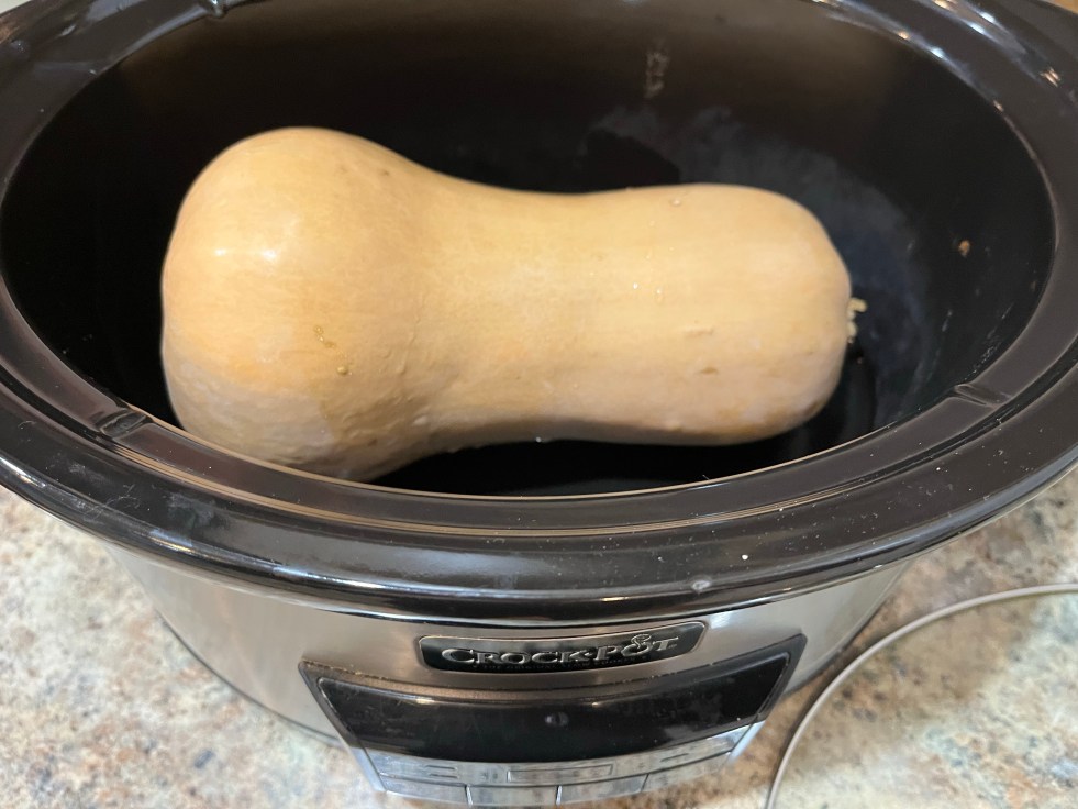 I have learned to really love Butternut Squash in this creamy and hearty Golden Winter Soup. Every fall I can’t wait for the squash to make its appearance in the grocery store so we can enjoy this recipe. Then I get the chunky odd-shaped veggie home and I wrestle peel the orange skin, and then I wrangle cut it into cubes. **Cough** **Cough** It’s not a job for the faint-hearted! I end up with peelings all over the counter and floor, and the most random sized pieces where I tried to get my knife through the stubborn flesh.