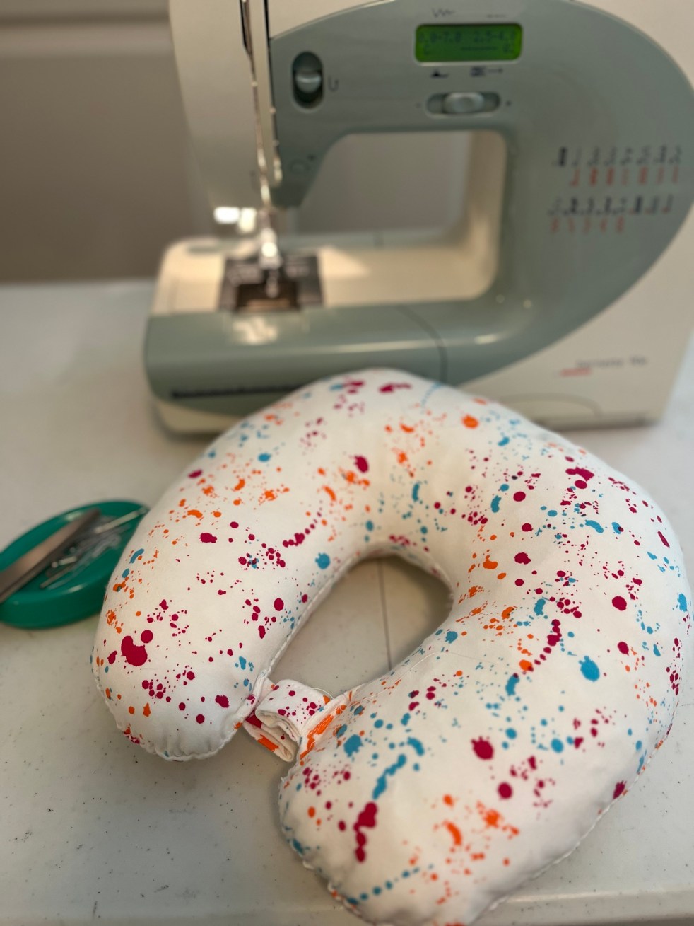 With all the travel we’ve been doing, I knew I had to do something to allow myself to be more comfortable in the car or airplane. Looking at the travel pillows, I realized that it would be simple to create one myself.