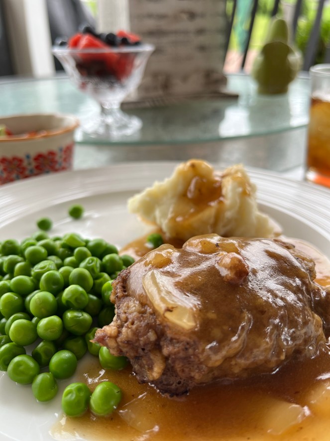What did I make?  Salisbury steak.!  If you’re thinking about the frozen dinner variety, think again.  This is meaty, plump and bursting with flavor as well as plenty of gravy to cover the meat and/or any potato you might eat with it.