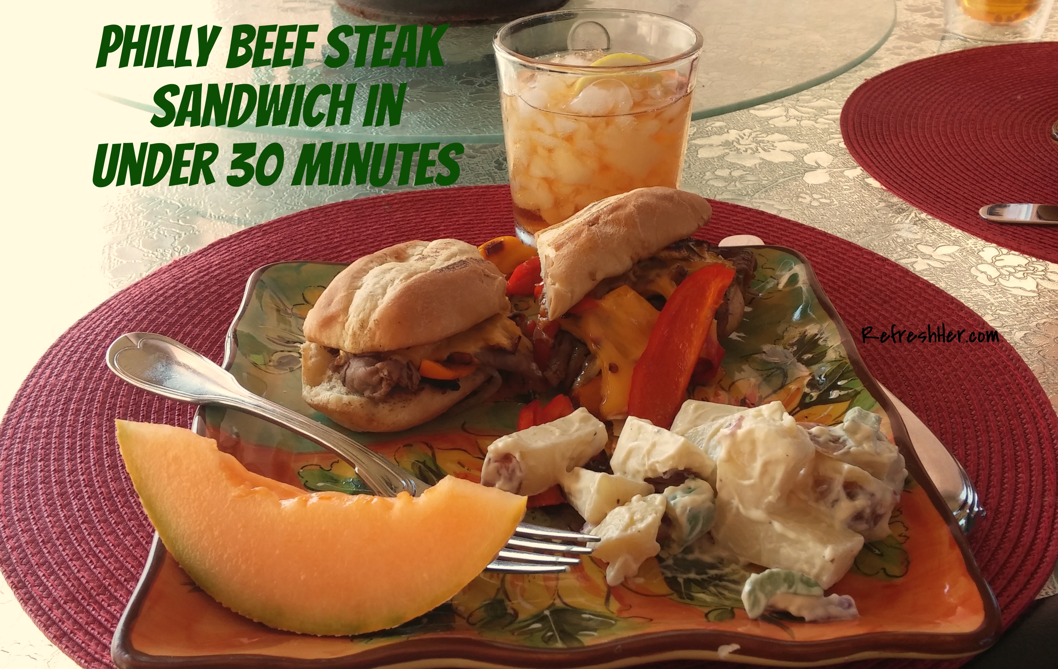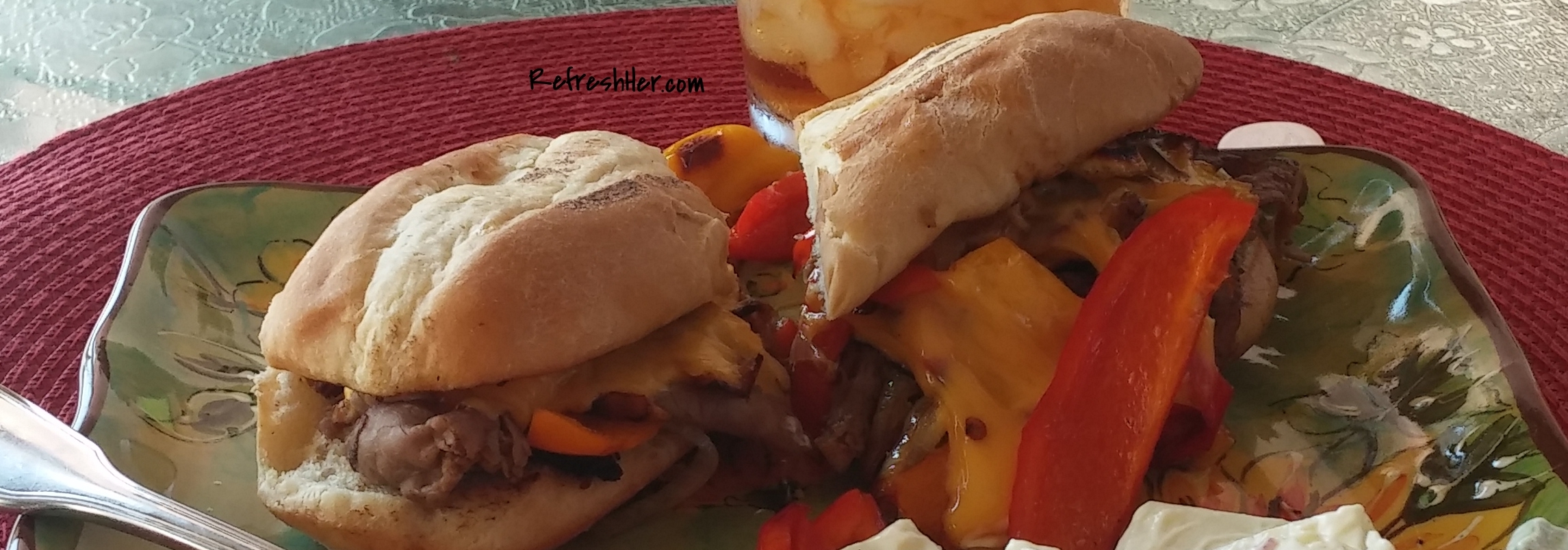 Not every supper has to be meat, potatoes, and vegetable, right? Sometimes a juicy, cheesy, beef sandwich at supper is a welcomed treat to both the cook and those who partake! I saw Pioneer Woman make this sandwich and thought I’d give it my spin. The results were delicious and very quick!