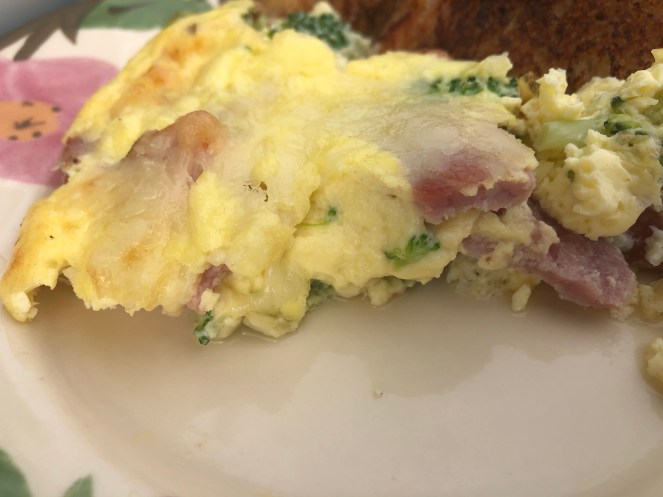 To make ahead, I chopped the broccoli and ham and grated the cheese and then set all that in the fridge. I mixed up the custard ingredients and set that bowl in the fridge. All I had to do 45 minutes before suppertime was assemble it in my pie plate.