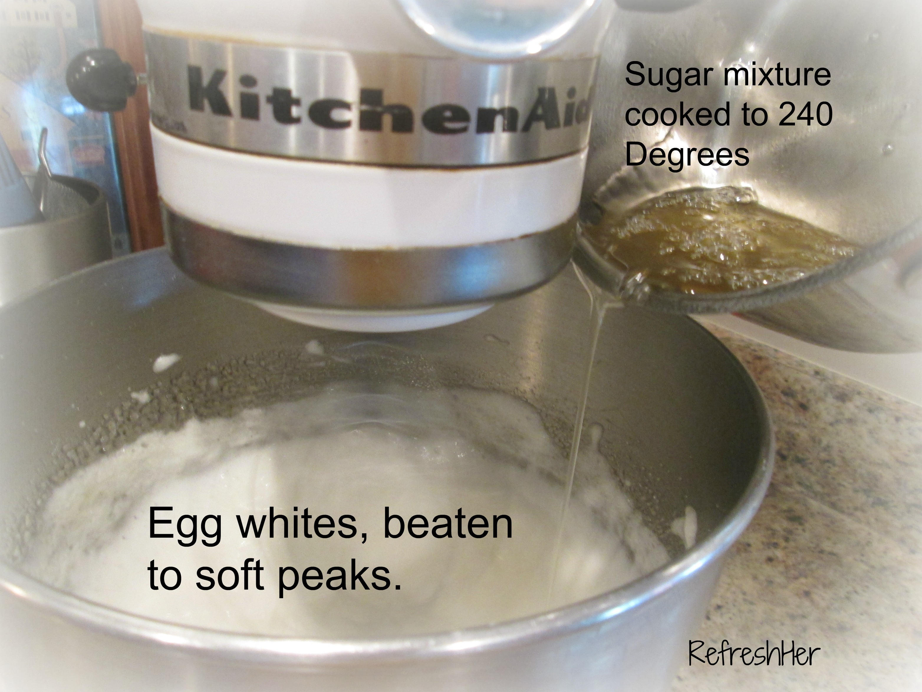2. Beat egg whites and cream of tartar at high speed with an electric mixer until soft peaks form; slowly add syrup, beating constantly. Beat until stiff peaks form and frosting is desired consistency.