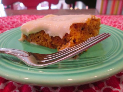 Now that fall is officially here, it’s time to start some of those seasonal dessert recipes rolling! For all of you pumpkin lovers, here’s a dessert in bar form that makes a lot but also delivers in moist, delicious pumpkin-ness! The cream cheese frosting is literally the icing on the cake that adds the perfect creaminess. Add a cup of coffee or a glass of milk and you have the perfect fall dessert!