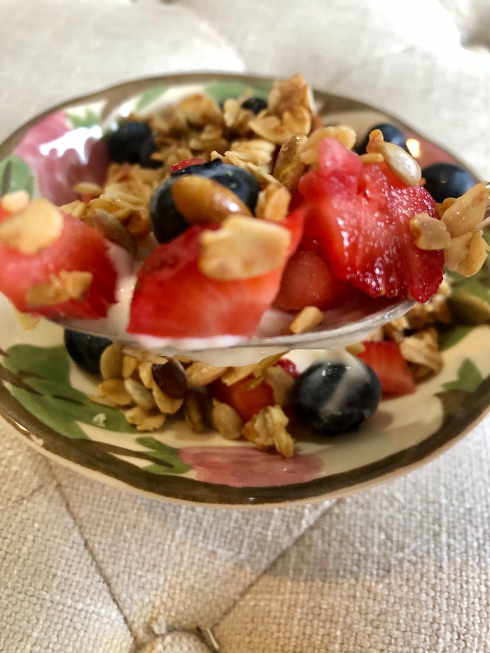 How easy it is to get into a breakfast rut! I’m not a huge fan of the typical breakfast foods, so an option with a crunchy granola sprinkled over Greek yogurt and fresh fruit makes my morning happy!