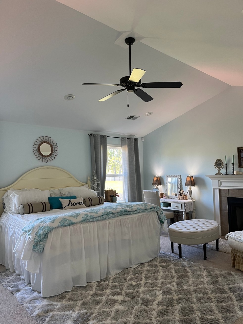 Like a giant spider hanging from the ceiling, the fan in our bedroom was unnecessary and unsightly to me. We never use the fan because the room stays plenty cool. For all the years we’ve lived here, that fan was my least favorite “decoration” in the room!