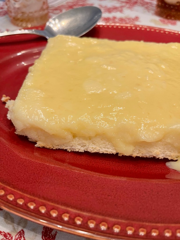 It was then that I remembered this fantastic Lemon Pudding Cake! This is baked in a water bath and it allows a soft sponge cake to go to the bottom and a luscious pudding layer to go to the top, creating a heavenly dessert!