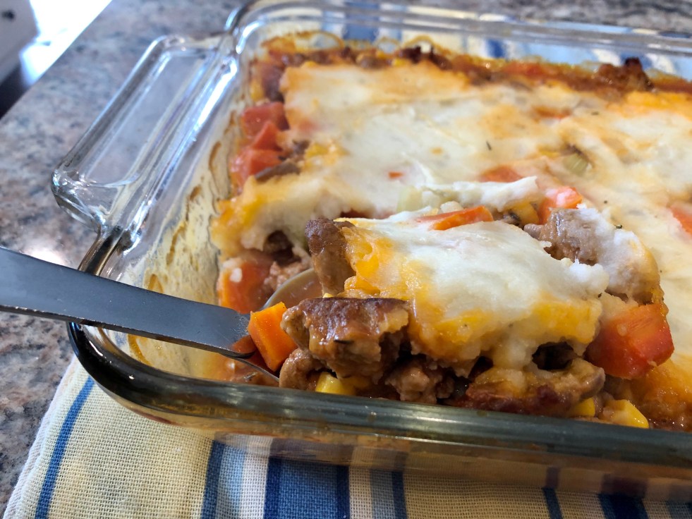 I have a beloved cookbook that houses the recipes of some of our nation’s best Bed and Breakfasts. One such recipe is for Shepherd’s Pie. If you’ve never had it, it’s basically a roast beef dinner served in a casserole dish. The beef, gravy and vegetables are on the bottom and then it gets “iced” with mashed potatoes!