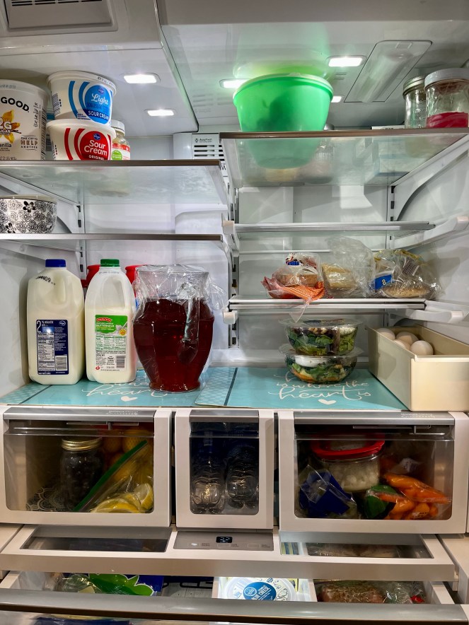 Last week on Instagram I saw Ree Drummond (Pioneer Woman) do a reel showing how she stocked her refrigerator. She started with a fridge that clean and empty. Then she added all new, unopened grocery items –