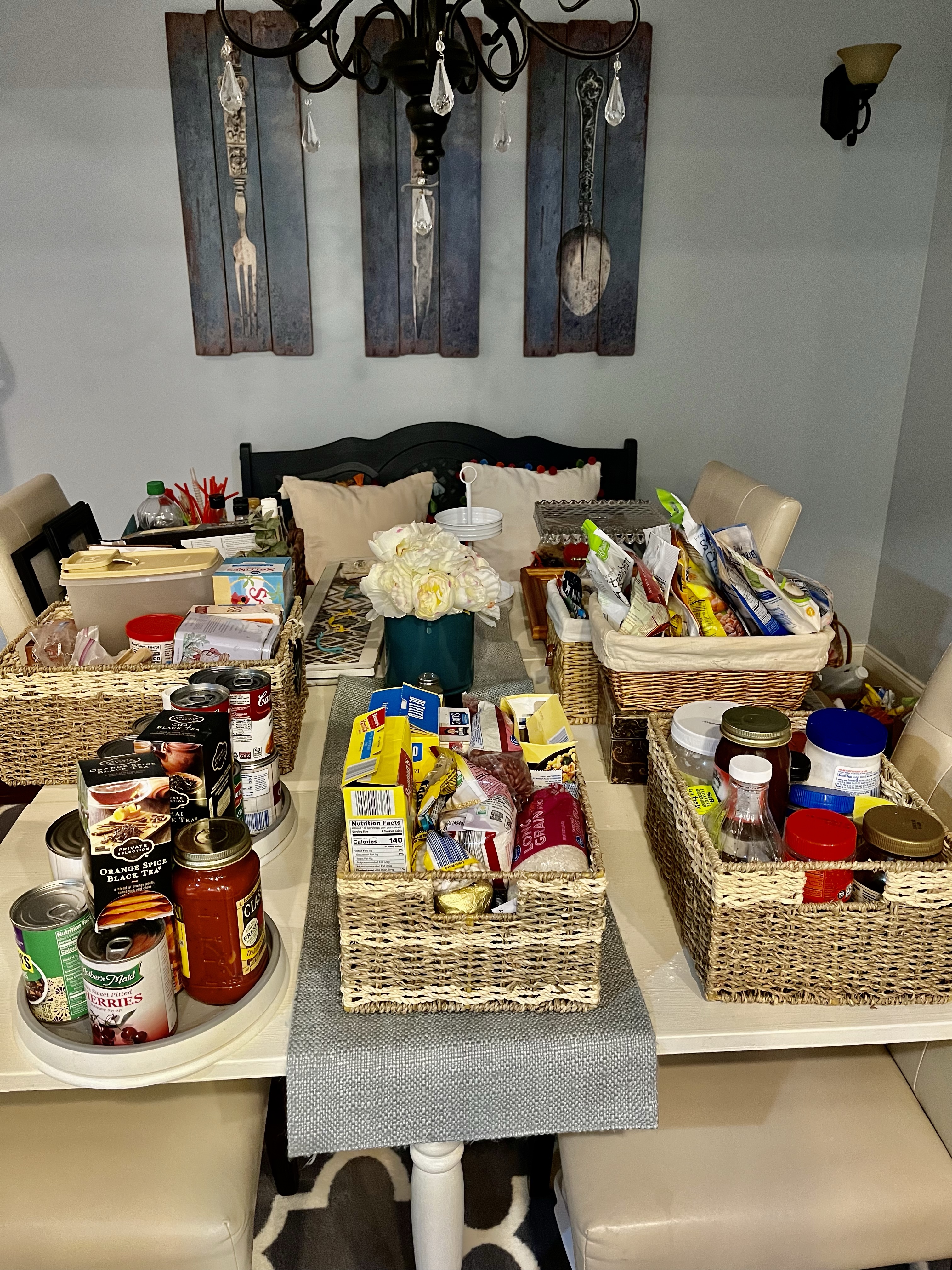 We have lived in our house for nine and half years and we are going through and slowly giving each room a fresh coat of paint. It feels amazing. This week the entry way, living room and kitchen were painted a lovely white called, Blue kiss. It’s a white paint with blue hues. As I was getting the rooms prepped for the paint job, I realized that my pantry was also a spot that had the “old” paint color. Soooo, I pulled everything out, put it on the kitchen table so it could get brightened up with the new white shade. It was a good bit of work, but I knew it was going to pay huge dividends!