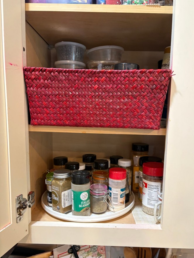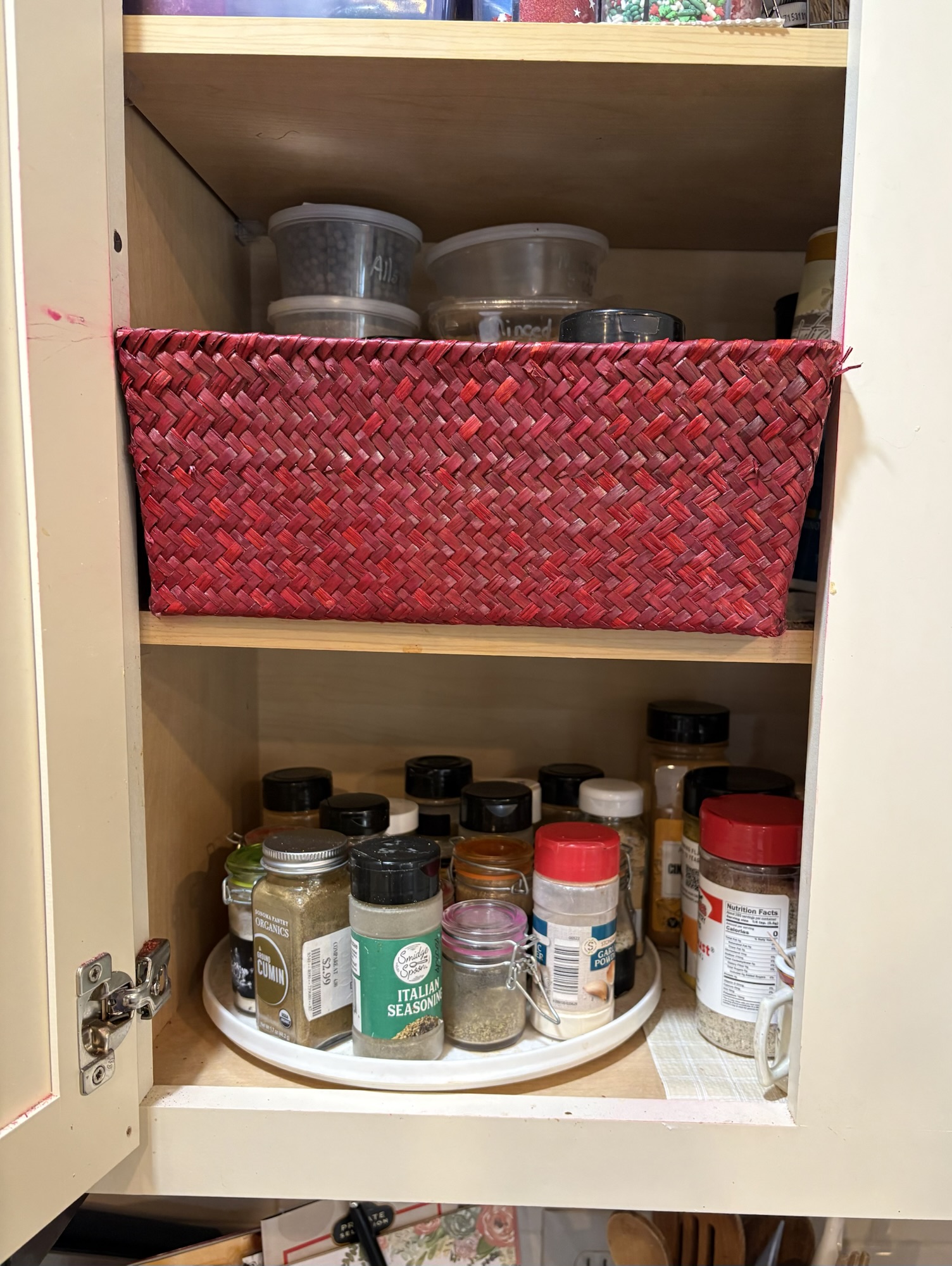 This weekend I had a couple hours when my love for organizing and my love for cooking collided. It was a needed collision! My spice cabinet that had been in good order at one time, had sadly gotten out of hand. It made my cooking more difficult, and I even found that I sighed inwardly any time I needed to search for a spice.