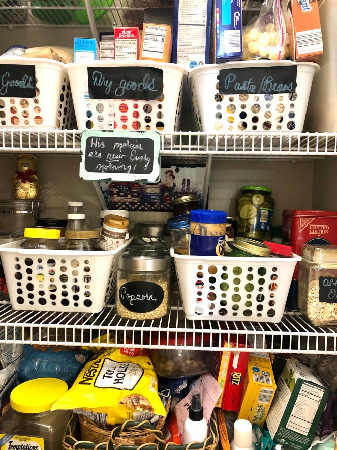 How about you? Do you need to take inventory of your pantry space? Do you need bins, jars or baskets to keep like things together? Is your space working well and making it easy to work in the kitchen? Even if your pantry is a cupboard or one shelf in a closet, it’s important to keep it organized so you know what you have, you don’t over-purchase and you’re more effective because of your organization. Also, it will make you smile every time you open it up! Well, maybe you’ll be smiling at the chocolate chips you see, but you will be smiling!