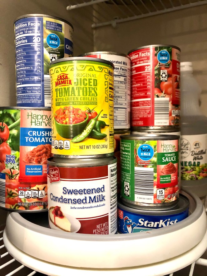 While my pantry might not be the most beautiful with glass jars and empty shelves, it works for me and I enjoy stepping inside now. Â My items are accessible and it makes me smile to open the door! Â Mission accomplished!