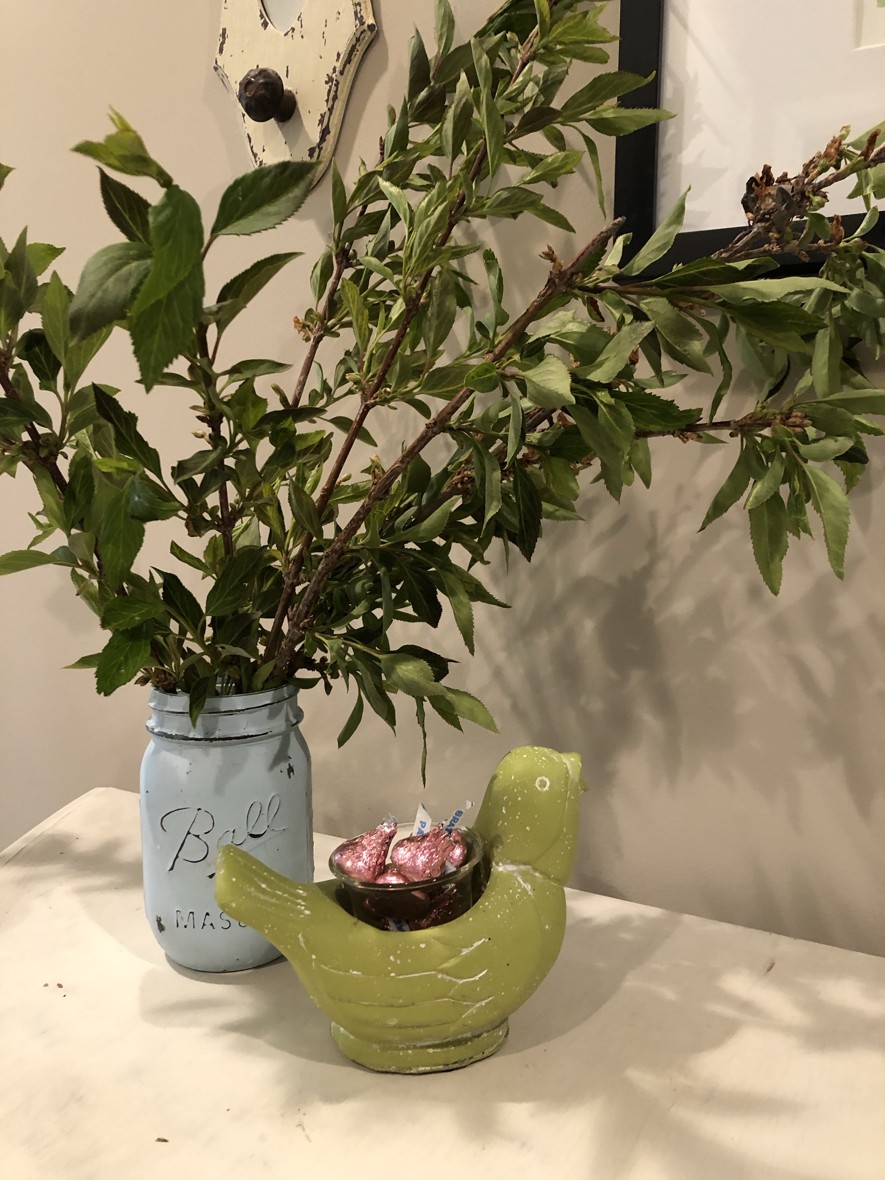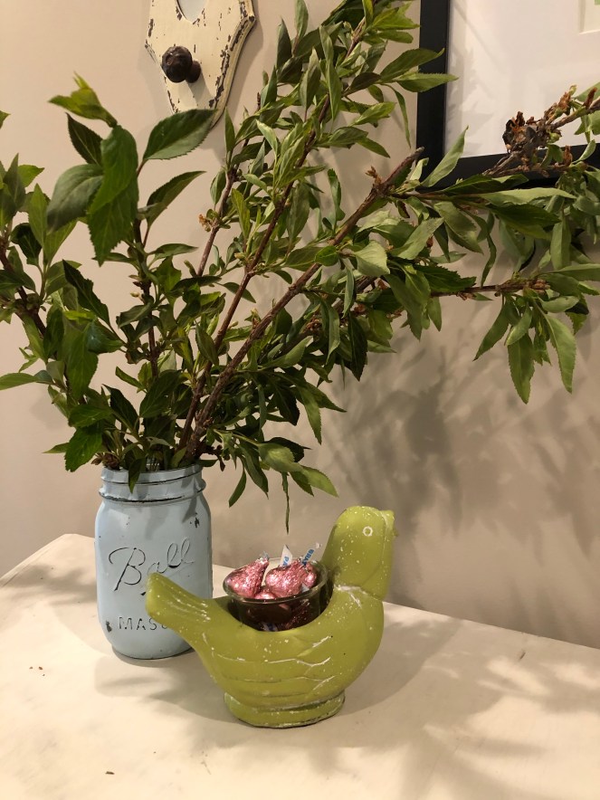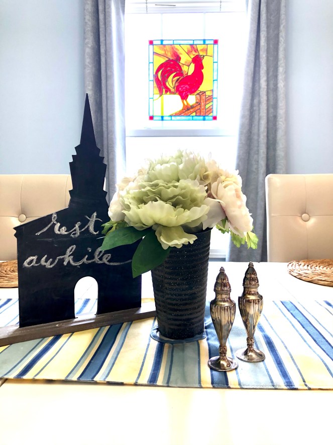Spring is also a great time to bring life inside our homes! It can start at the kitchen or dining room table. I love making pretty tablescapes, but I love it even more when I gather all the needed items from my house and don’t have to purchase one thing!!